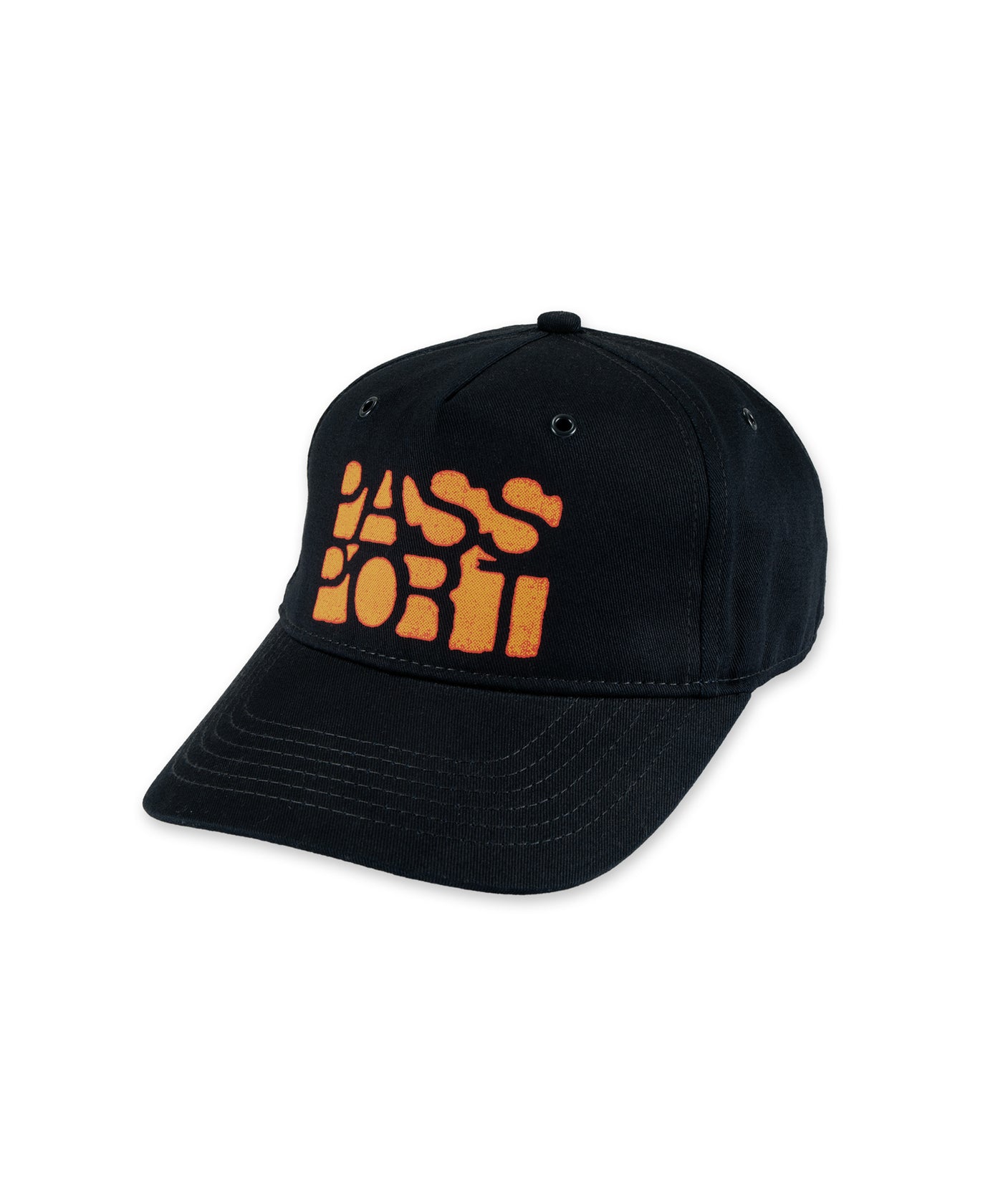 Pass~Port Rough Neg Packers Cap from range #47. The Pass~Port Packers Cap is made in a 5-panel construction from 100% cotton twill. Featuring a screen printed front with adjustable strap back with brass buckle and curved brim.