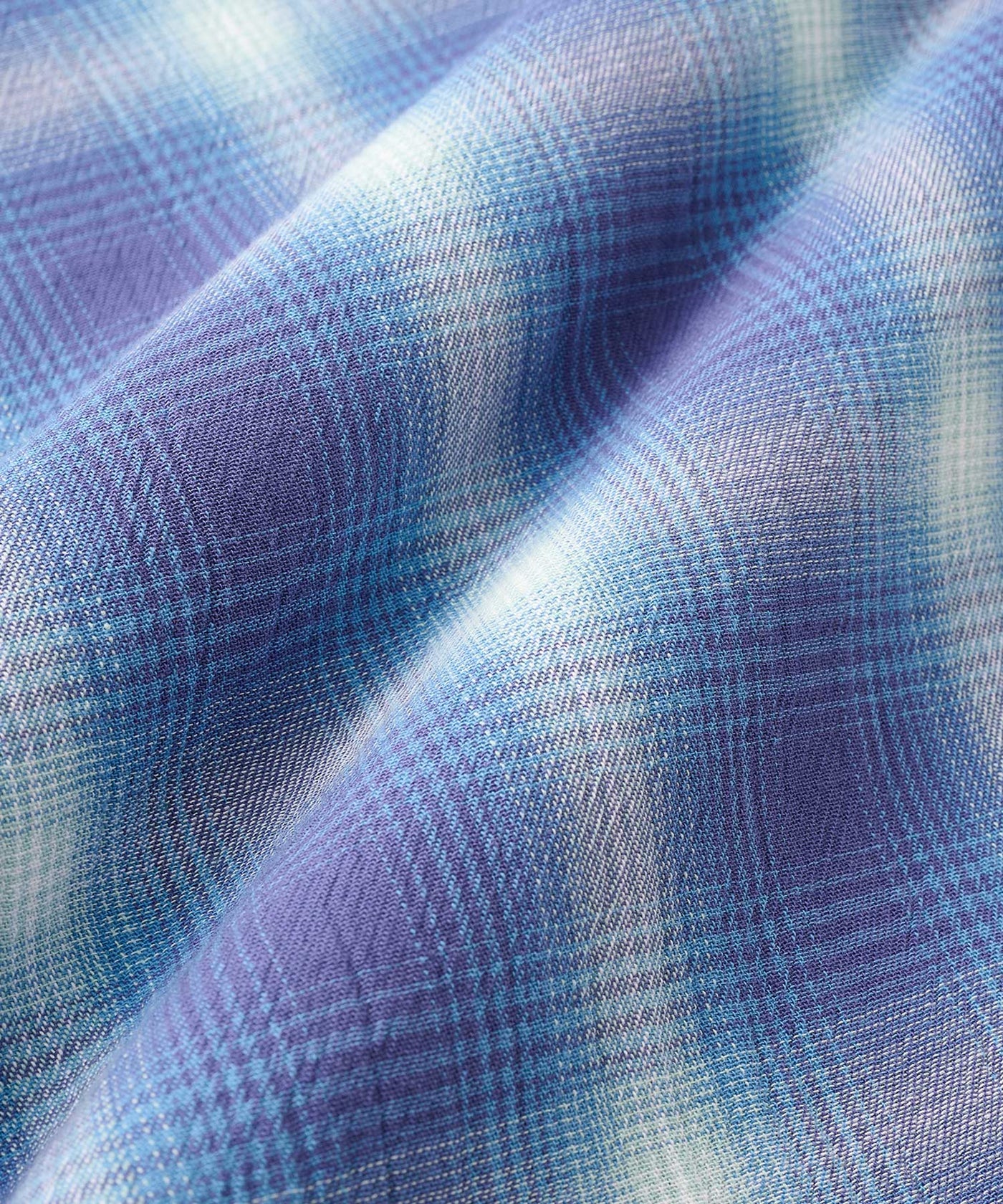 ウォッシュド加工が施されたオンブレーチェックを使用したシャツ。