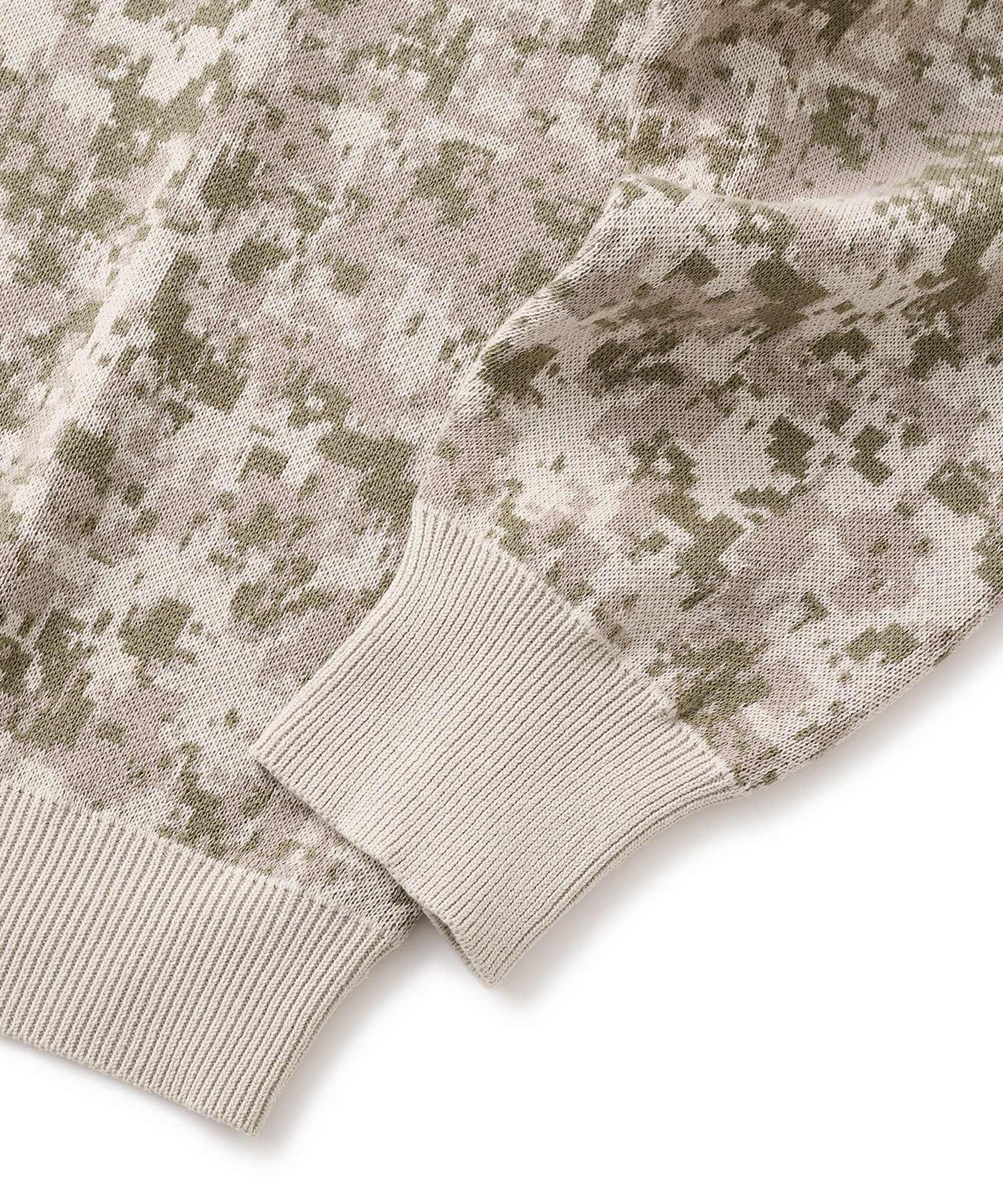 コットンダブルジャガードで編み立てたジップアップセーター。